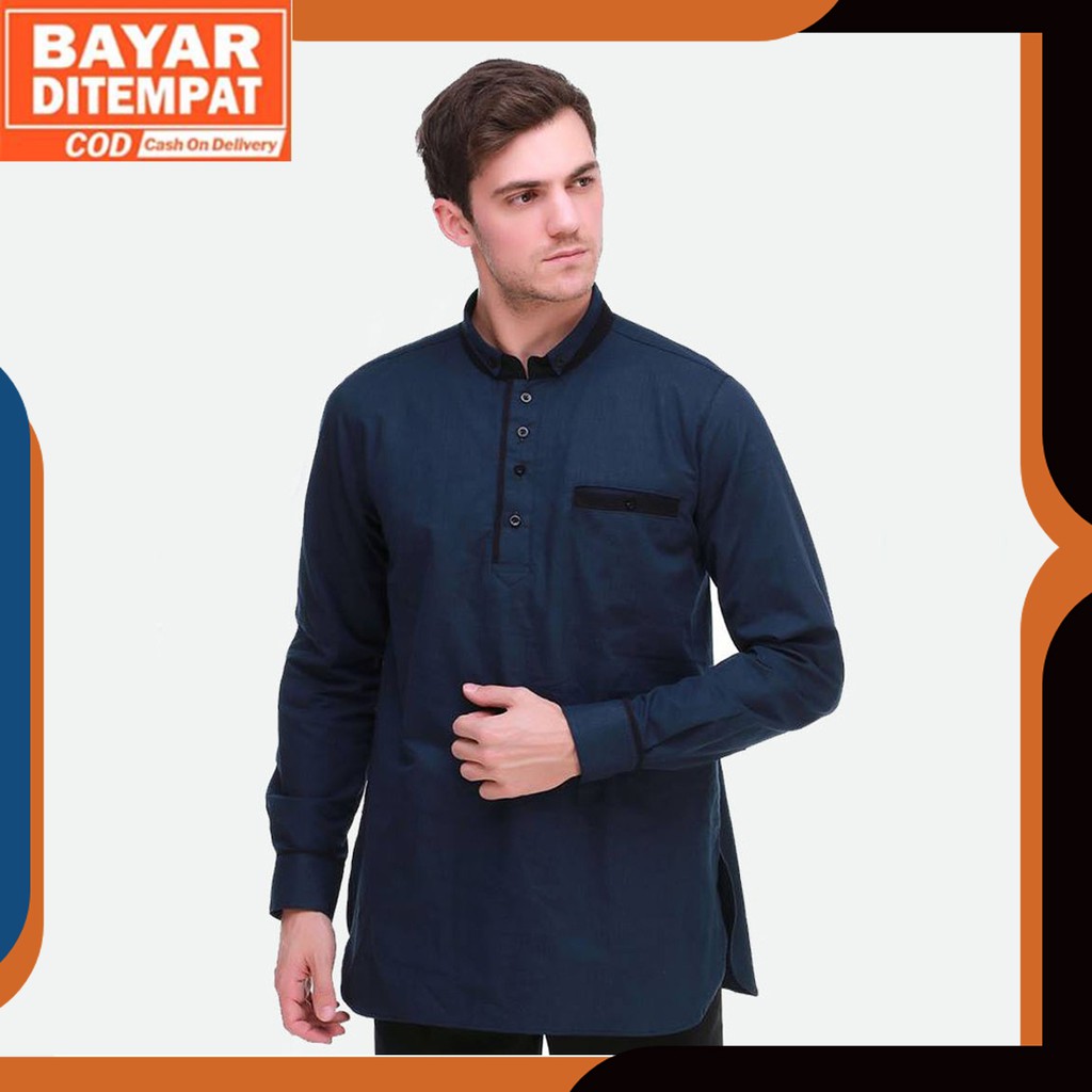 Baju Kemeja Muslim Pria Katun Navy Kok 1642 Gudang Fashion