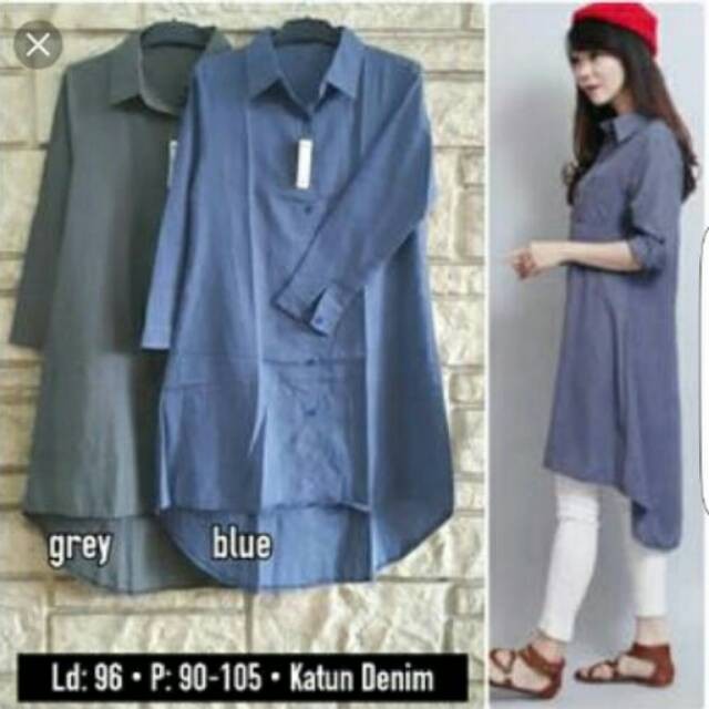 Jual Baju Kemeja Muslim Wanita Katun Denim Hijab Jilbab Blouse