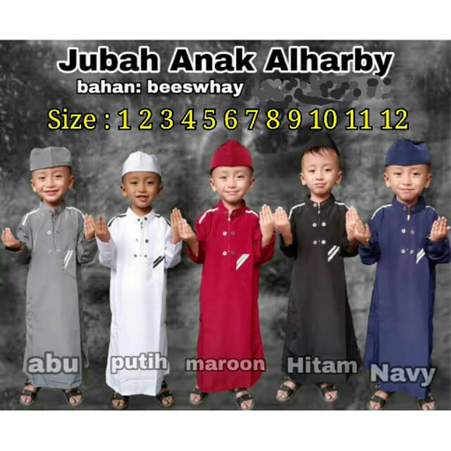 Jubah Anak Alharby Usia 1 2 3 4 5 6 7 8 9 10 11 12 Tahun Gamis