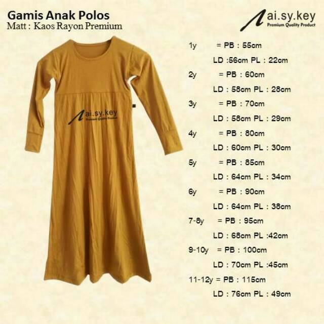 Gamis Anak Usia 6 8 Thn 1 Ukuran Baju Muslim Anak Free Bergo