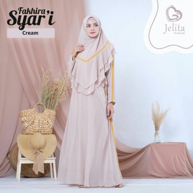Gamis Set Fakhira Syari Dress Cream By Jelita Muslimah Shopee