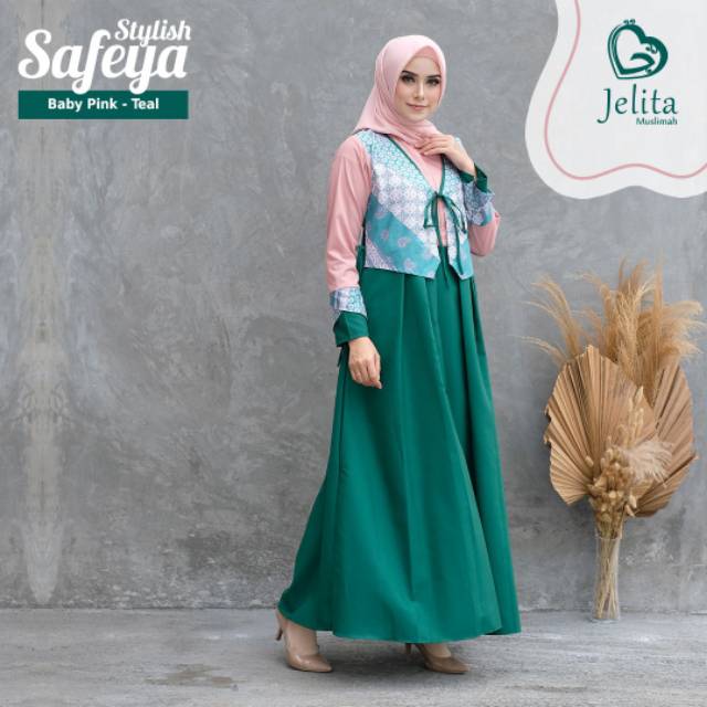 Safeya Baby Pink Teal Jelita Muslimah Gamis Cantik Casual Gamis