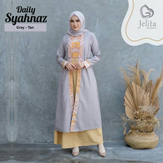 Gamis Syahnaz Daily Dress Grey Tan By Jelita Muslimah Shopee